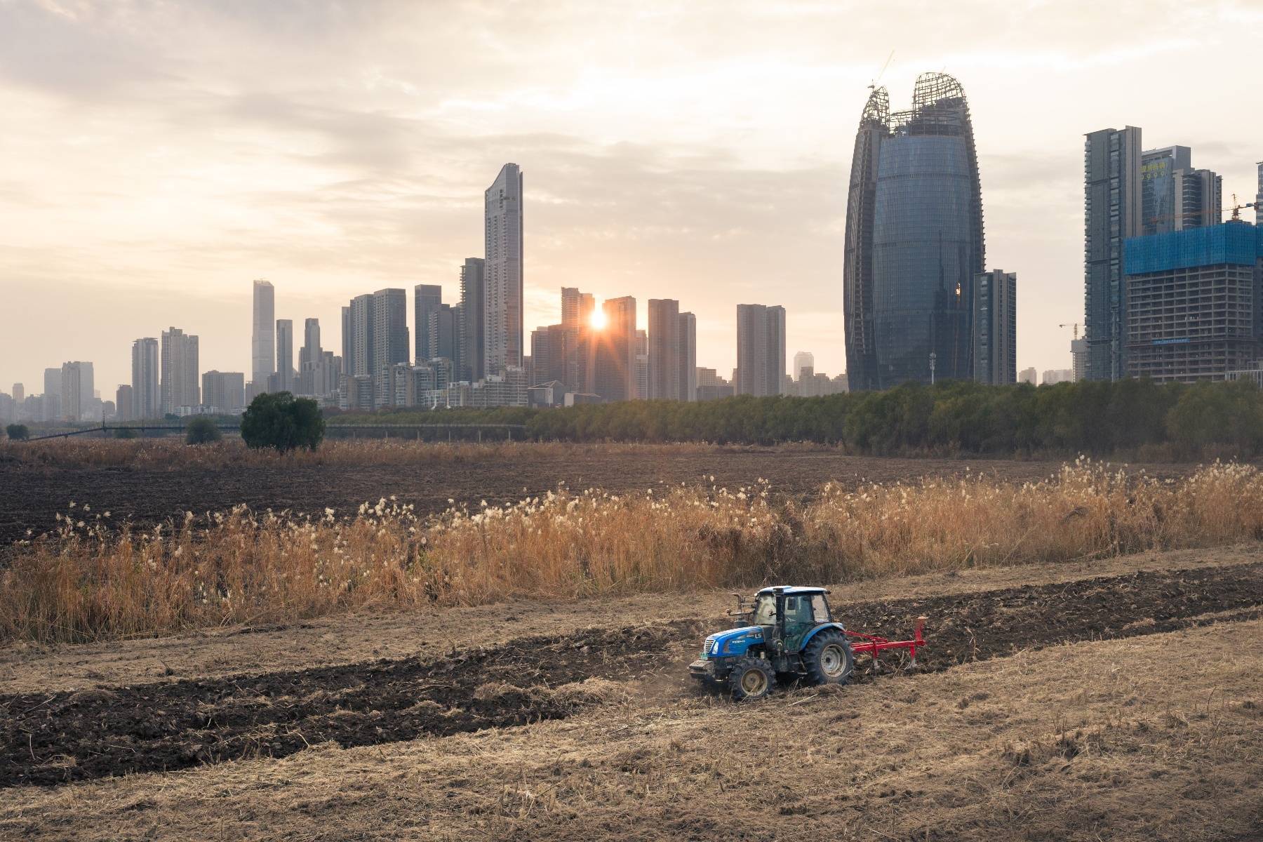 12月15日,九派新闻记者在汉口江滩看到,多台旋耕机轰鸣驶入滩涂,正在芦苇丛中忙碌作业,钢铁犁刀所过之处,一排排芦苇被旋耕犁刀接连收割、粉碎。